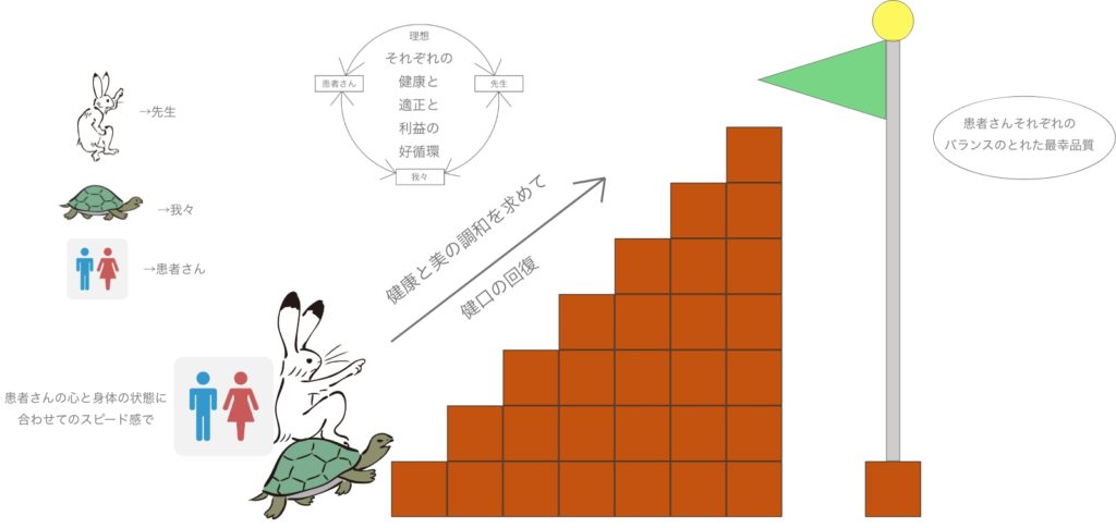 装着してくださる患者さんのその先の幸せを願い、必要であれば患者さんそれぞれに対する一連のご提案やプロセスを進めてバランスのとれた最幸品質の義歯を完成させます。