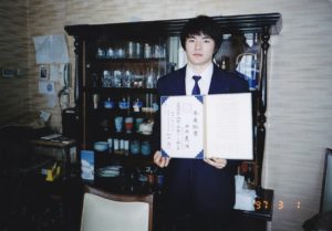 やんちゃな学生?ではありましたが臨床模型(複製)での製作の質はわからずともスピードは早く、2年生の時には学生代表になるなどの経験もし、父の同期生である先生や父の先輩である方々とお会いして当時のことをお話しいただけました。それから無事卒業の時期を迎えました。進学か就職かの選択をするにあたり、帰省した際に当時入院いていた父に”就職より進学したい”と相談をしに行きました。父からは進学するなら道内の学校にしてほしいと資料を渡されましたが、無理を言って東京の日本歯科大学附属歯科専門学校専攻科鋳造床科に進学を決めました。