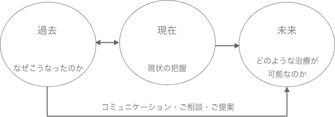 最善を尽くすために現状から過去を予測したうえで必要であればラボサイドからも先生にご相談・ご提案をする中で未来の幸せを願い、ご要望・ご希望に対しご納得いただける義歯治療の選択肢を先生と共に患者さんに自由にお選びいただきます。